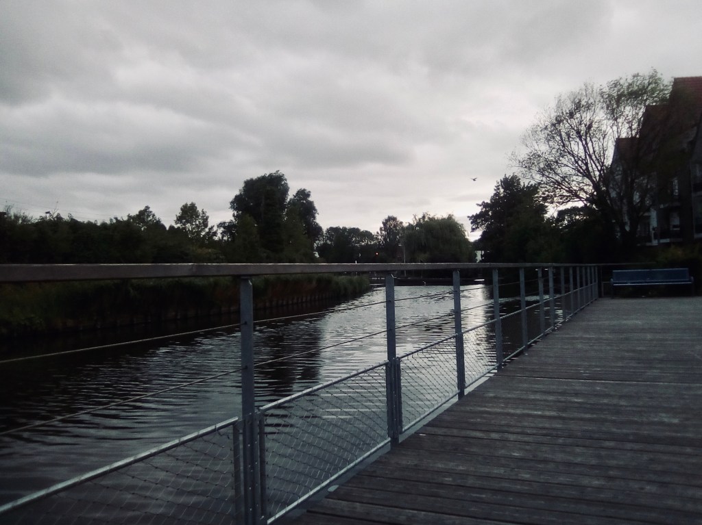 Attraverso la strada e c’è il canale. A quest’ora è deserto, dopo un sabato di bici e runner a recuperare le settimane ferme. Incontro un cagnolino con signora che mi saluta solidale. Forse è una fuggiasca temporanea come me, una boccata di solitudine e ritorno.