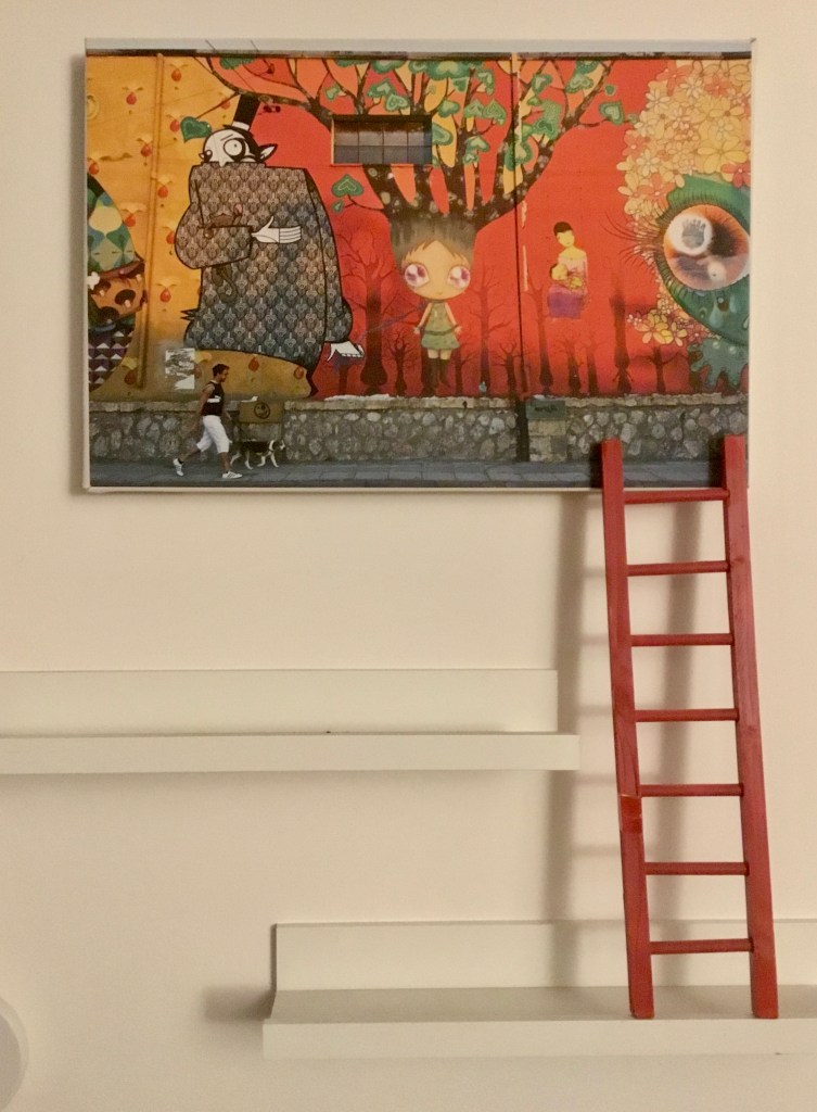 Giù in strada sta passando il tizio che abita nella casa all’angolo. Arruffata lei, allampanato lui. È lungo lungo, porta una canottiera da basket rossa e nera su jeans a tubo largo, il cappellino con la visiera girata completa la sua aria da cerino spento.