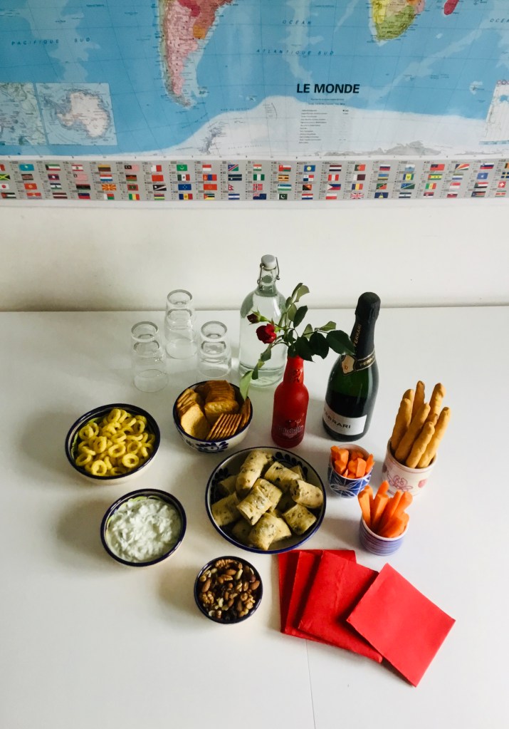 Lo preparo con cura, magari un po’ troppo in anticipo. Patatine, pane alle olive. Lo tzatziki di conforto è in fresco insieme a una bottiglia italiana che dovevamo stappare qualche mese fa. Verrà buona stasera. Forse. Chissà.
