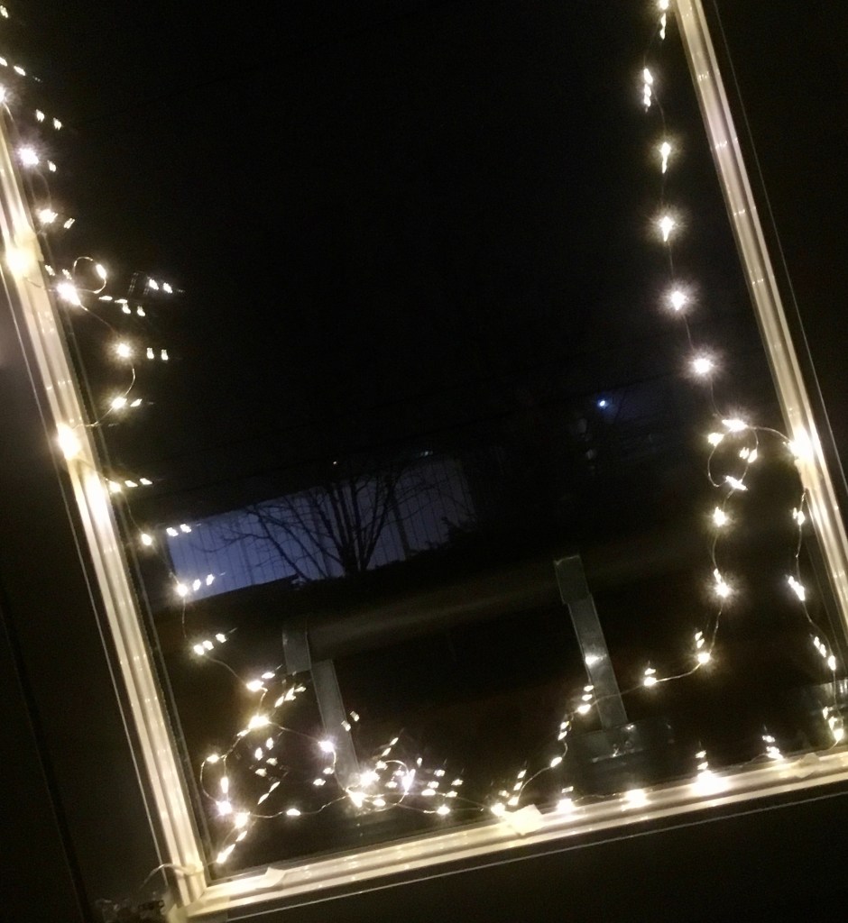 Quella della cucina ho deciso di spegnerla, alla fine. Prima però sono andata a guardarla da fuori: sembrava una festa, con la cornice delle lampadine a led.