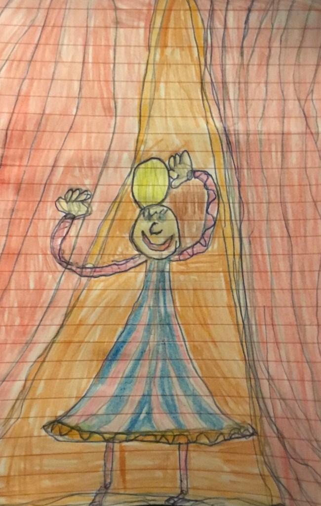Con un paio di pantaloni indiani ho raccontato di un bambino che non riesce a dormire. L’anno scorso a scuola. La casacca verde con il cappuccio è stata perfetta per quest’anno. In febbraio riprenderò una storia di neve con un vestito bianco che chissà che meraviglie ha visto. È incredibile e mi calza a pennello.